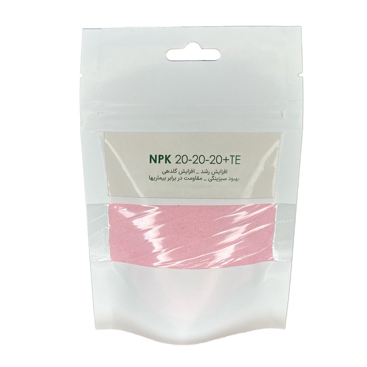 20%نیتروژن، 20%فسفر، 20%پتاسیم، 0.026آهن، 0.0075%مس، 0.032% منگنز، 0.023% روی، 0.01%بر