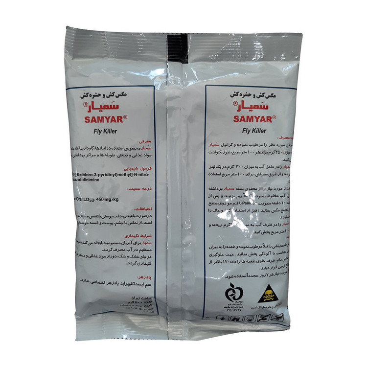 مگس کش سمیار سمیران حاوی ایمیداکلوپراید 0/5 درصد، برای اولین بار در ایران تولید شده است. این محصول بطور اختصاصی جهت مبارزه با مگس و بطور عمومی جهت کنترل حشرات خانگی در دامداری ها و ساختمان های، انبارهای مسقف، انبار غله، انبارهای کشاورزی، گاوداری ها، کارخانجات مواد غذایی، صنعتی و .... کاربرد دارد و مصرف آن در اماکن با آلودگی شدید بسیار بصرفه است . جذابیت این سم برای حشرات به دلیل ترکیبات مخصوص جذب کننده بهمراه فرمون جنسی حشره که مخصوص شناسایی حشرات برای تولید مثل است و نیز رنگ مخصوص برای حشرات بسیار جلب کننده می باشد. نحوه کاربرد آسان و سریع است و در مدت 24 ساعت سبب کاهش چشم گیر جمعیت حشرات می شود با ماندگاری طولانی می شود. سمیار برای آبزیان سمی است و نباید بطور مستقیم در آب استخرهای ماهی و آکواریوم استفاده گردد.