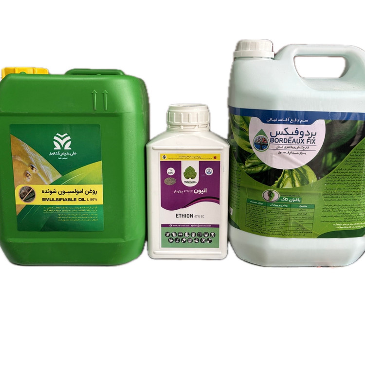 پک سمپاشی زمستانه درختان میوه مناسب برای ۵۰۰ لیتر آب میباشد. این پک شامل یک لیتر حشره کش اتیون 1 لیتری ایرانی ، ١ عدد روغن سمپاشی ٥ ليتري و ۱ عدد بردوفیکس 5 لیتری است